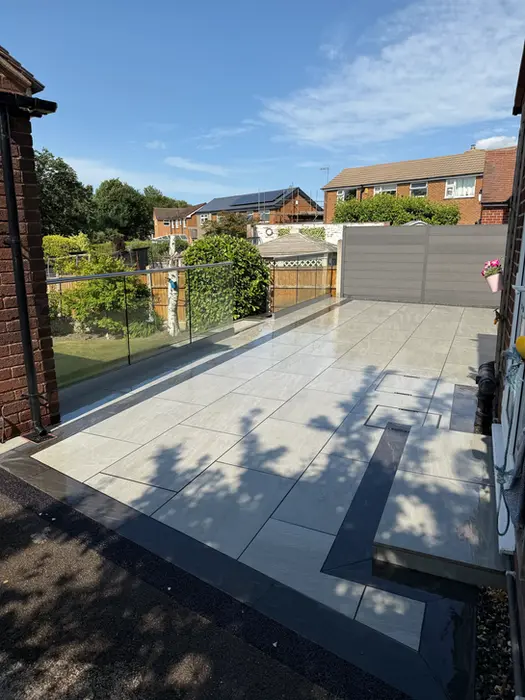 Transform your outdoor space with professionally laid porcelain patios or sandstone patios built to last.